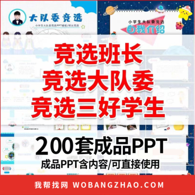 卡通小学生竞选自我介绍ppt模板大队委员班干部班长竞选演讲海报